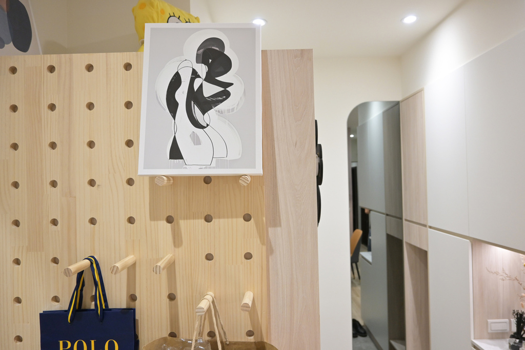 【高雄室內設計推薦】新家開箱:木質調x藕色系~溫馨浪漫的夢想之家│玄關櫃/洞洞板/家電櫃/弧形跳色床背板讓新家處處實用又驚喜!明日喆居室內裝修案例分享
