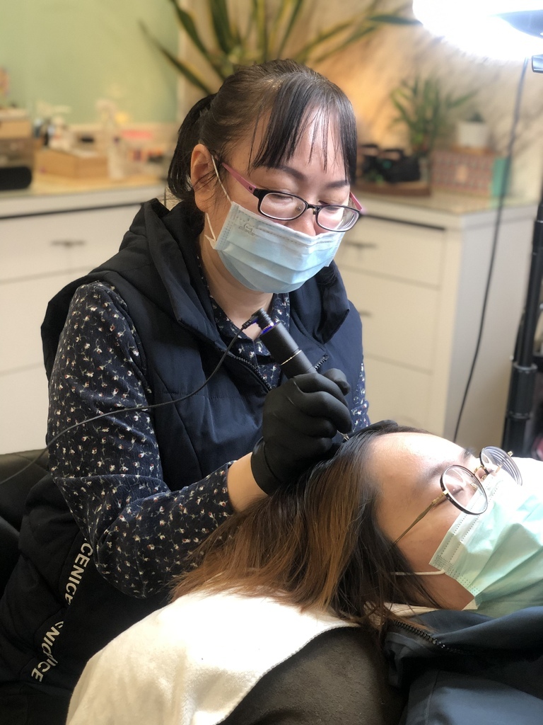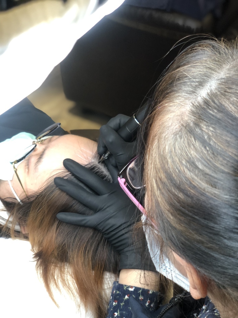 事情是這樣的,她原本對紋髮沒什麼研究,直到她發現自己年紀漸長,髮量開始變少,去做了一次紋髮後,才知道這技術有多神!但價格也不便宜,她當時只做了髮縫區域,就花了三萬多!就是這個經歷,讓我姊對紋髮技術產生超大興趣,決定自己來學。
