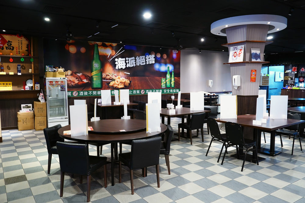 ▼環境以熱炒店來說算乾淨明亮,內用管制都有使用隔板與梅花座,防疫嚴謹。