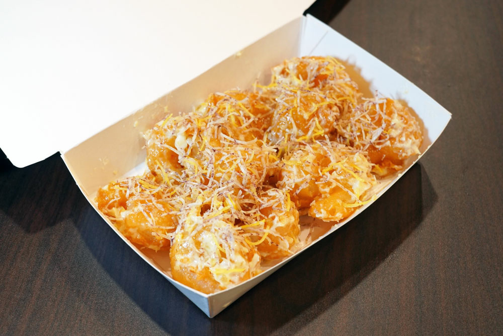 鄰居說家裡小孩很愛這道,外表灑上地瓜與芋頭絲,口感更加有層次,酥脆的蝦球外皮,酥中帶鮮嫩。