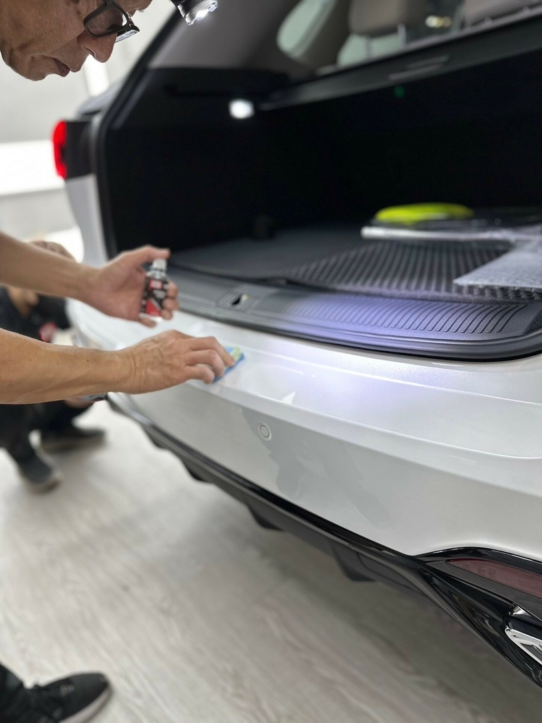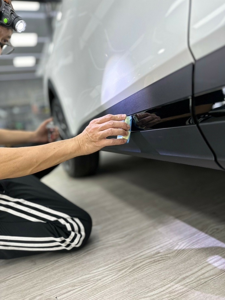 如果車身有細小刮痕,師傅會進行局部拋光處理,利用專業工具和技術讓車漆表面恢復平滑如新。這一步不僅提升外觀,還能為後續的鍍膜施工提供更好的附著力。