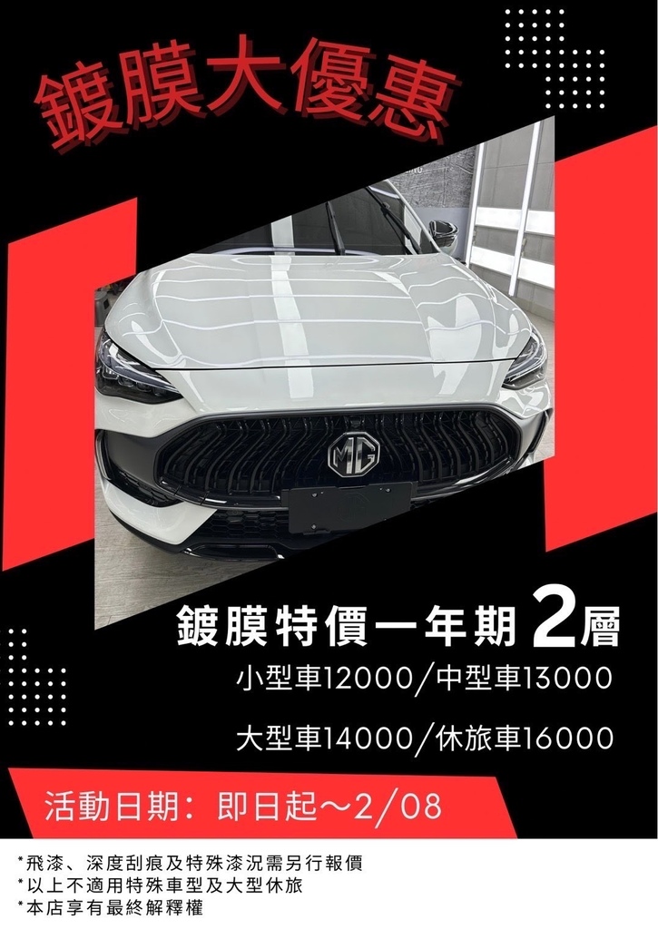 除了美觀,鍍膜還能有效保護車漆,抵禦紫外線、酸雨和鳥屎的侵蝕,讓我的愛車長久保持閃亮如新。有了這層保護,我相信我的MG能一直保持最佳狀態,陪伴我走遍更多美好旅程!🚗💨