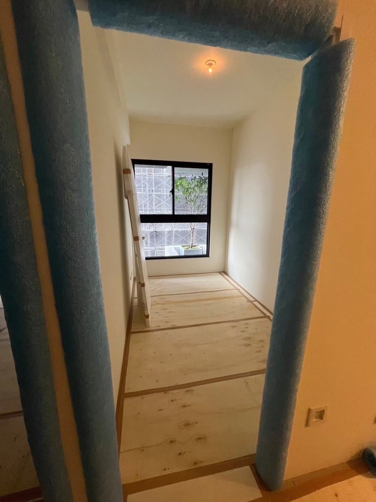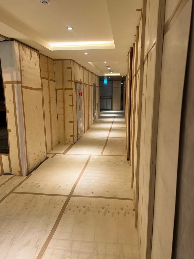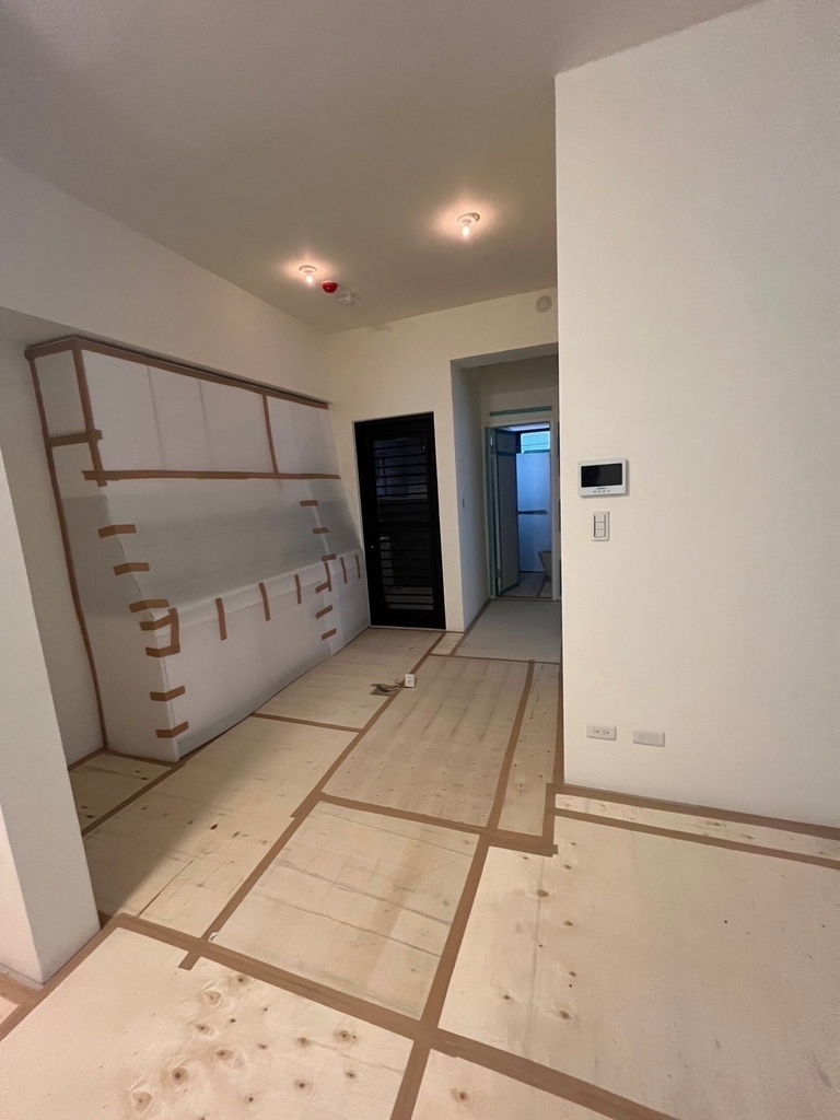 現在大樓施工對公設保護真的很嚴謹!從停車位就開始鋪保護墊,電梯公共空間、大門、室內地板、櫥櫃、房間,全面保護,不僅體現了施工團隊的專業,也讓整個裝修過程更加安心。