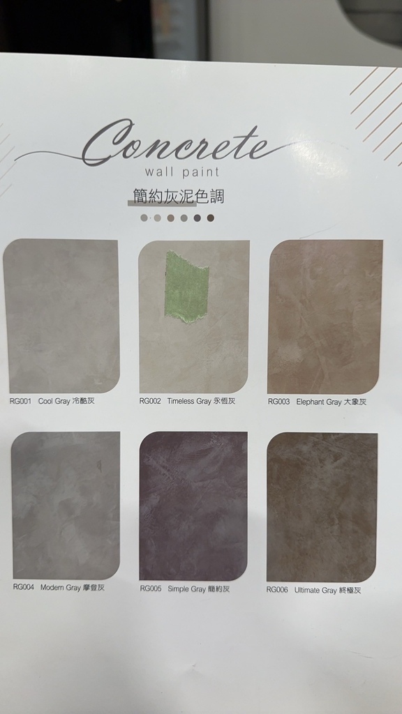 好幾種灰色調塗料選擇,我姊和設計師比對好幾次,終於決定了最適合的色調。