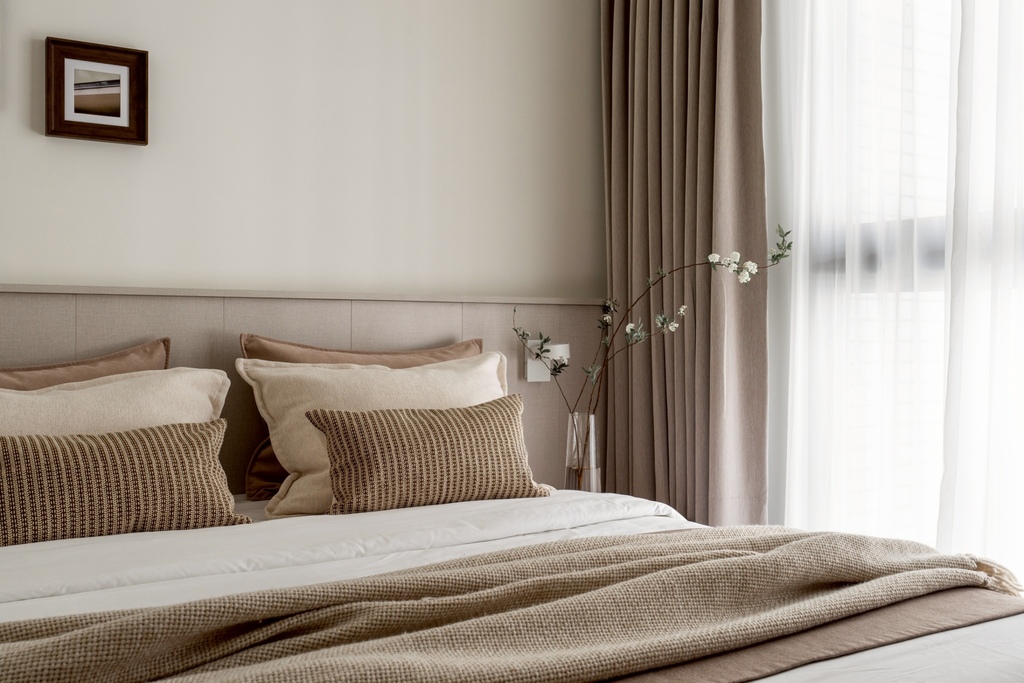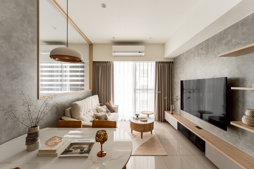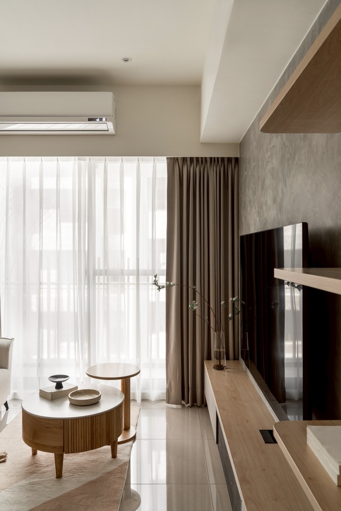 來到客廳,採光真的很棒!陽光透過落地窗灑進來,讓本來不大的空間頓時明亮開闊。設計師選擇了比例適中的家具,既不會太過擁擠,也不顯得空蕩,恰到好處營造出舒適感。比起我家塞滿各種雜物的客廳😅這種極簡風格反而更讓人放鬆!
