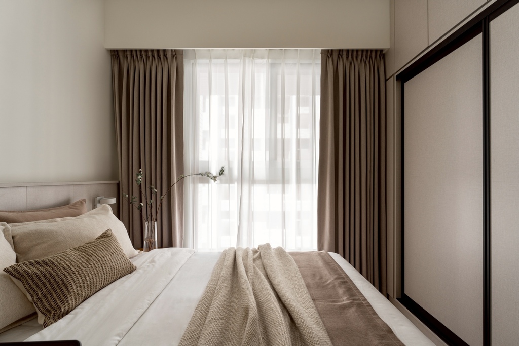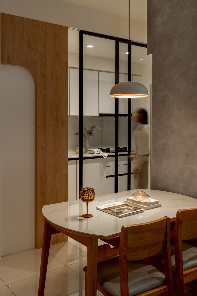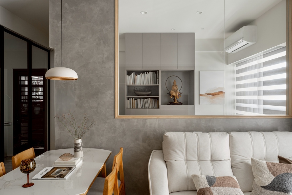 原本封閉的+1房,設計師將它改成半牆半玻璃的設計,瞬間讓空間通透起來,既保有獨立空間的功能性,又不會讓整體感覺狹小壓迫。