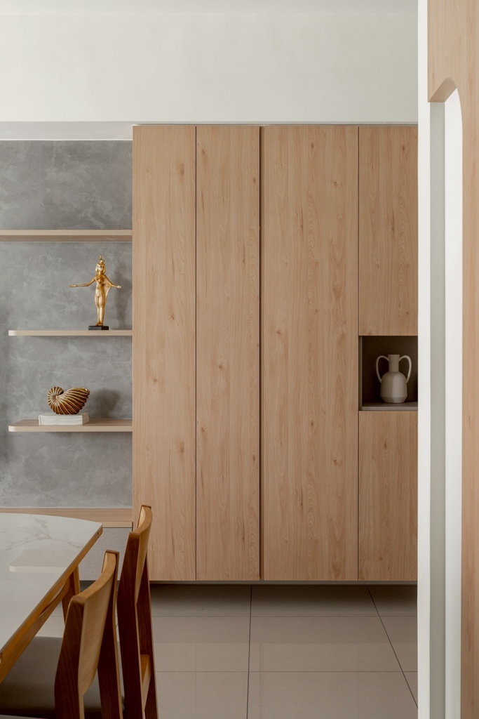 我姊說設計師在規劃初期就花了很多時間跟她溝通,了解她的生活習慣、收納需求,加上我姊是個非常有條理的人,把每一樣物品的使用頻率、尺寸、習慣都列得清清楚楚。也因為這樣,收納空間幾乎是量身打造,每一寸空間都物盡其用,完全沒有「好看但沒用」的虛設,每一個細節都很符合她的心意。