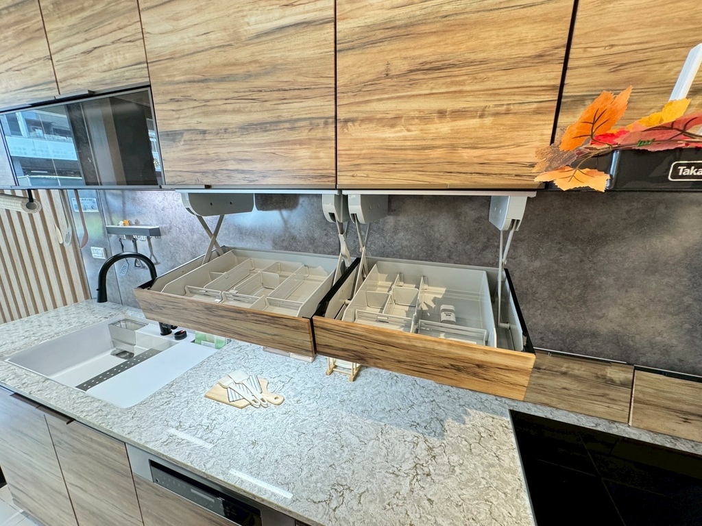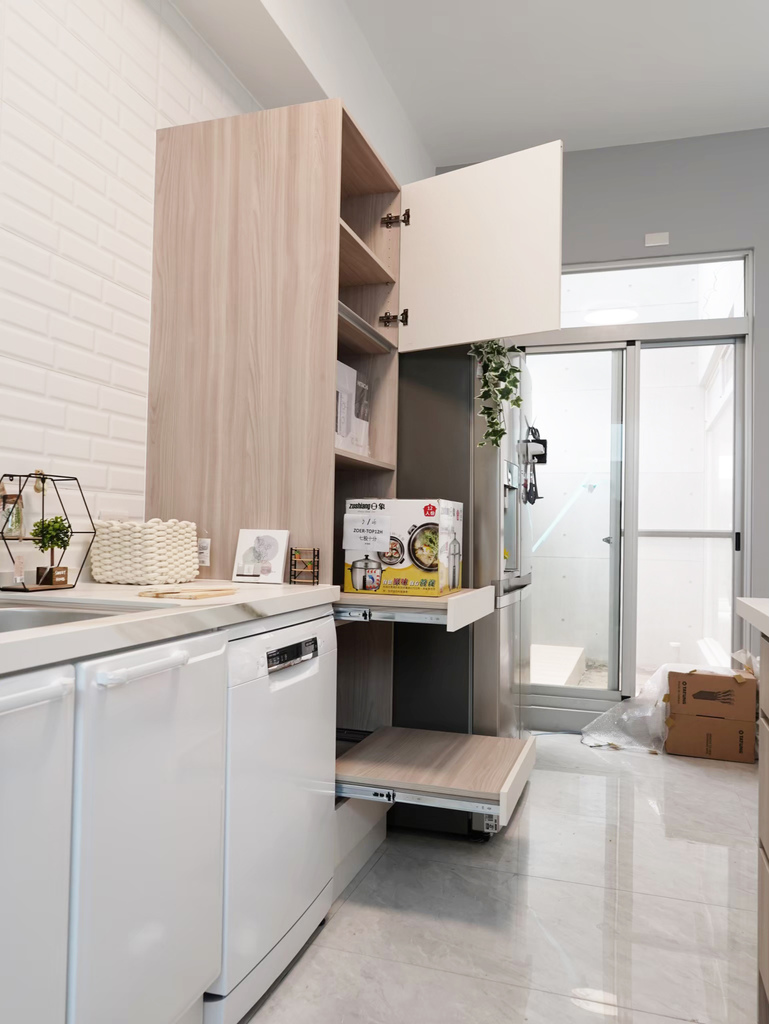 ▼電器櫃的設計也是滑順好用,讓媽媽使用、拿取電器一點都不費力。