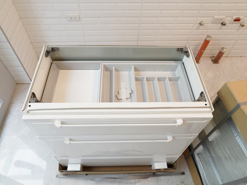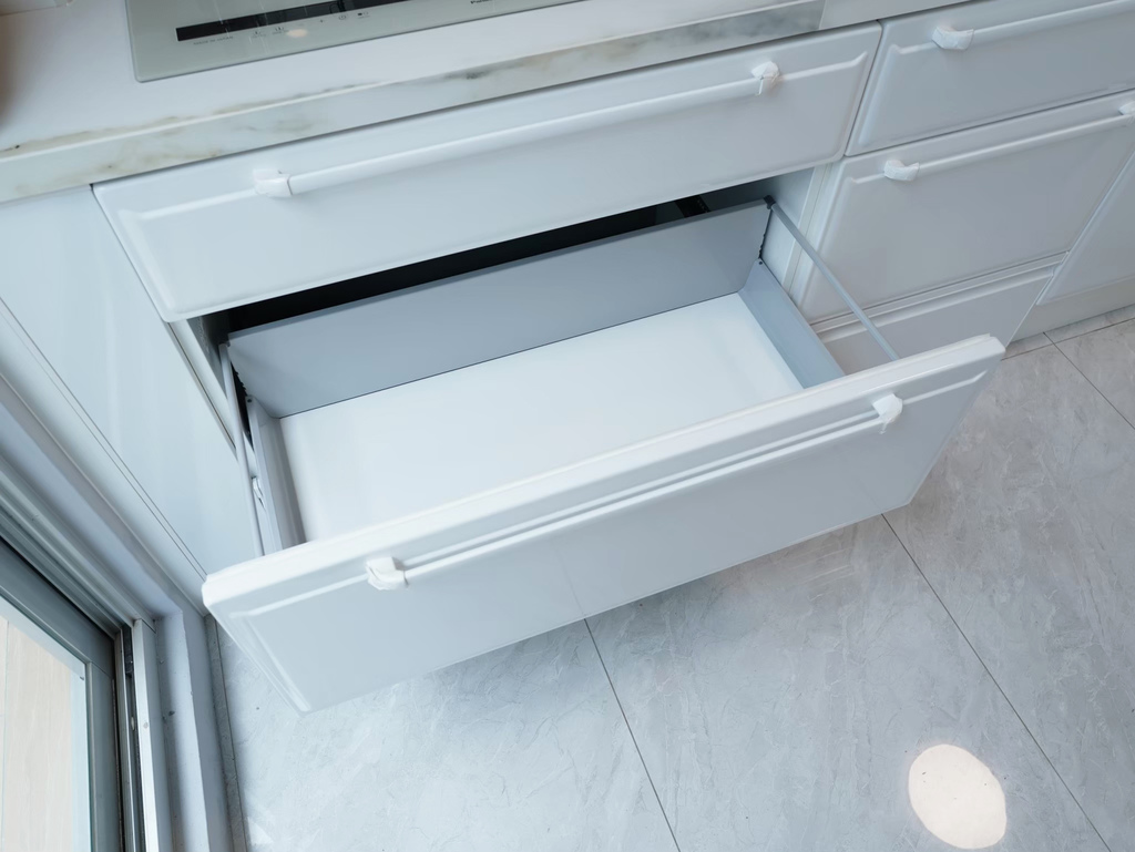 ▼全琺瑯材質,連抽屜背板也是琺瑯,好清潔、耐刮耐熱又防潮,用久也不怕發霉起泡。